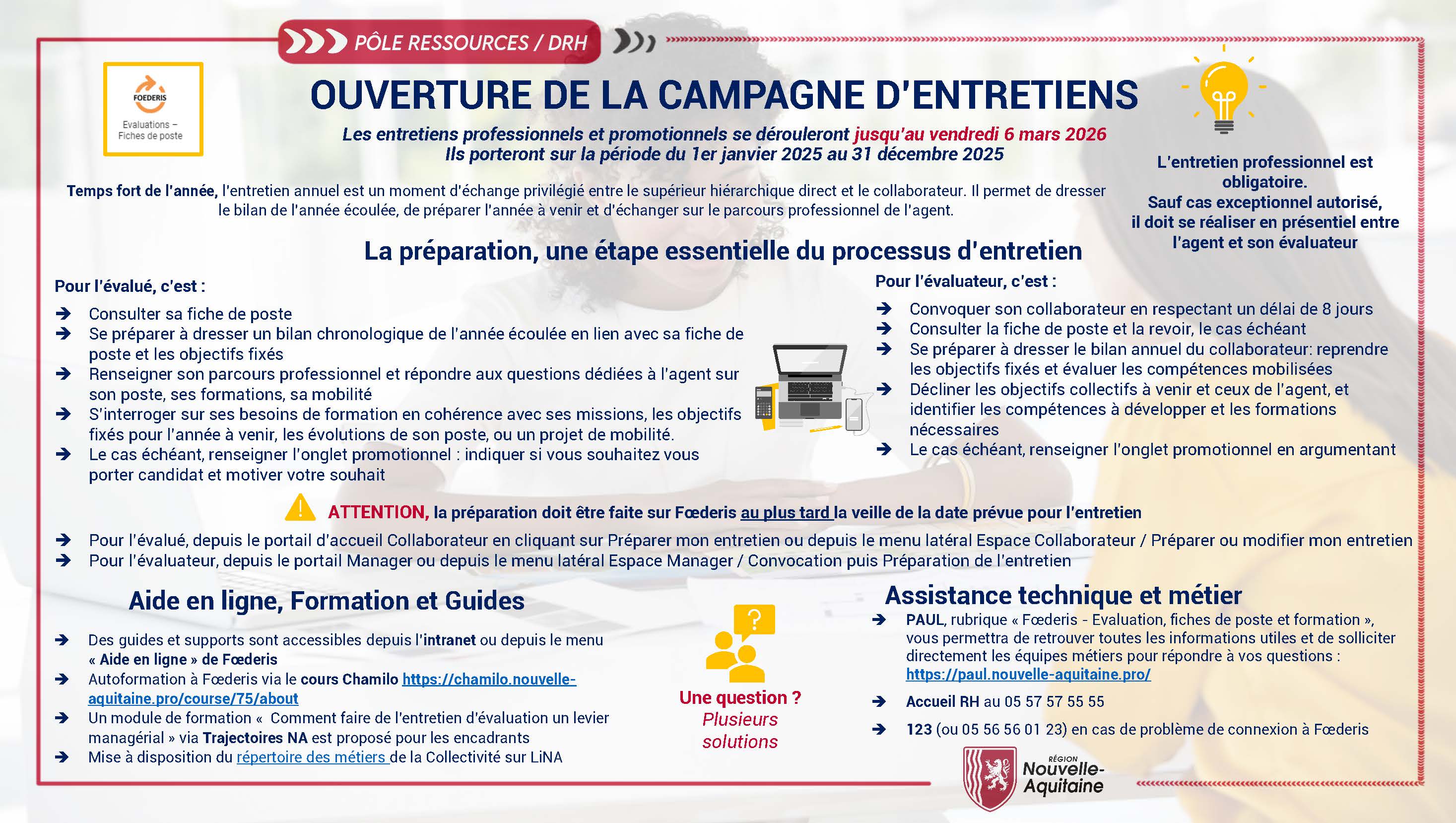 Le détail des dispositions propres à la Région, est précisé dans le Guide de l’entretien professionnel dont l’édition 2026 est en ligne sur LINA.